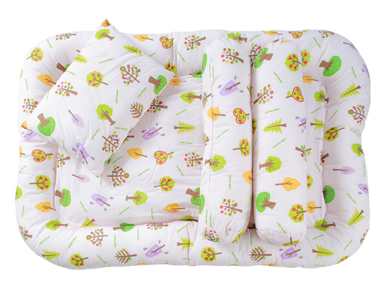 Consists of mattress, pillows & bolster filled with a polyester / cotton fibre mix to keep your baby cool & comfortable.